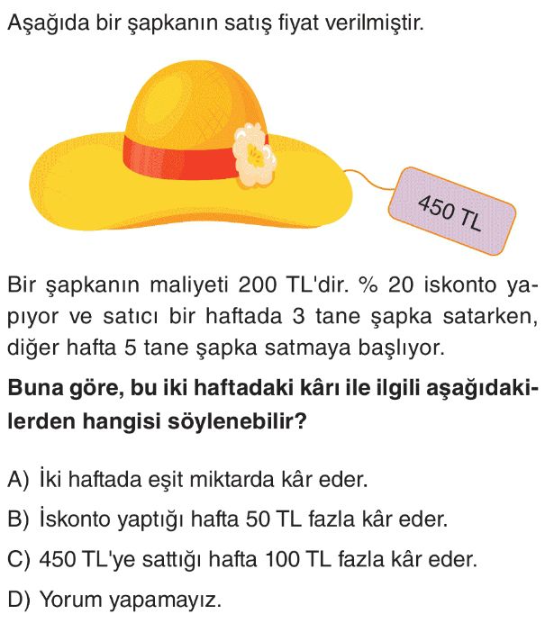 6. Sınıf Bir Çokluğun Yüzdesi ve Yüzde Problemleri Test 9