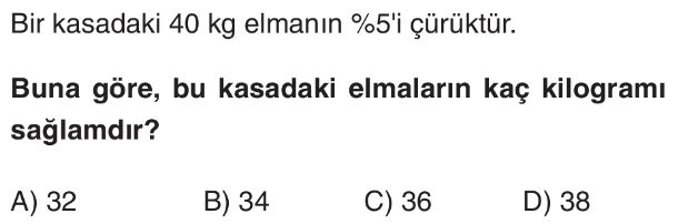 6. Sınıf Bir Çokluğun Yüzdesi ve Yüzde Problemleri Test 9