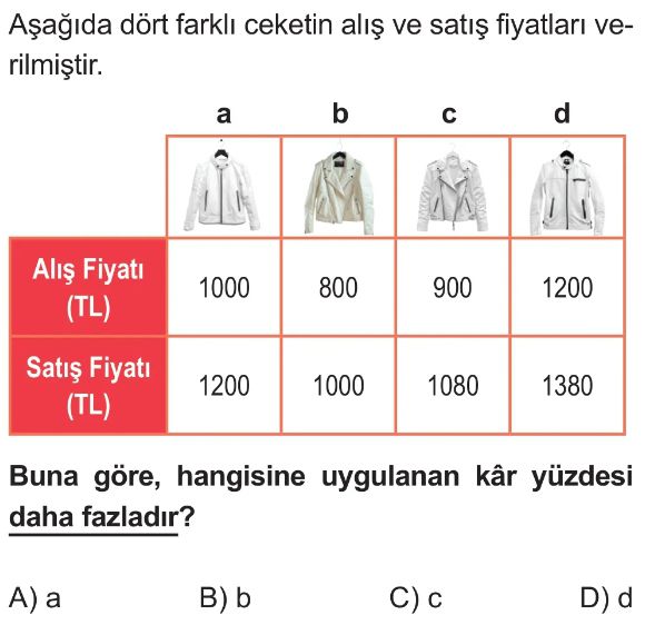 6. Sınıf Bir Çokluğun Yüzdesi ve Yüzde Problemleri Test 9