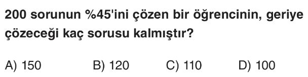 6. Sınıf Bir Çokluğun Yüzdesi ve Yüzde Problemleri Test 10