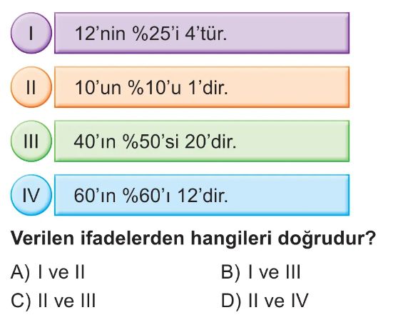 6. Sınıf Bir Çokluğun Yüzdesi ve Yüzde Problemleri Test 10