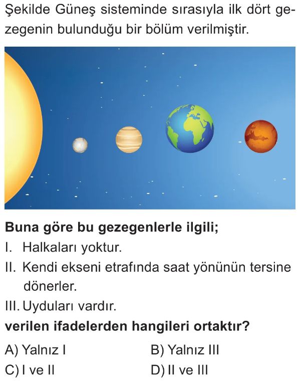 6. Sınıf Güneş Sistemindeki Gezegenler Test 1