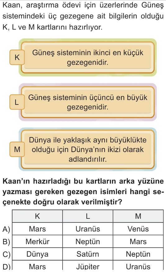 6. Sınıf Güneş Sistemindeki Gezegenler Test 1