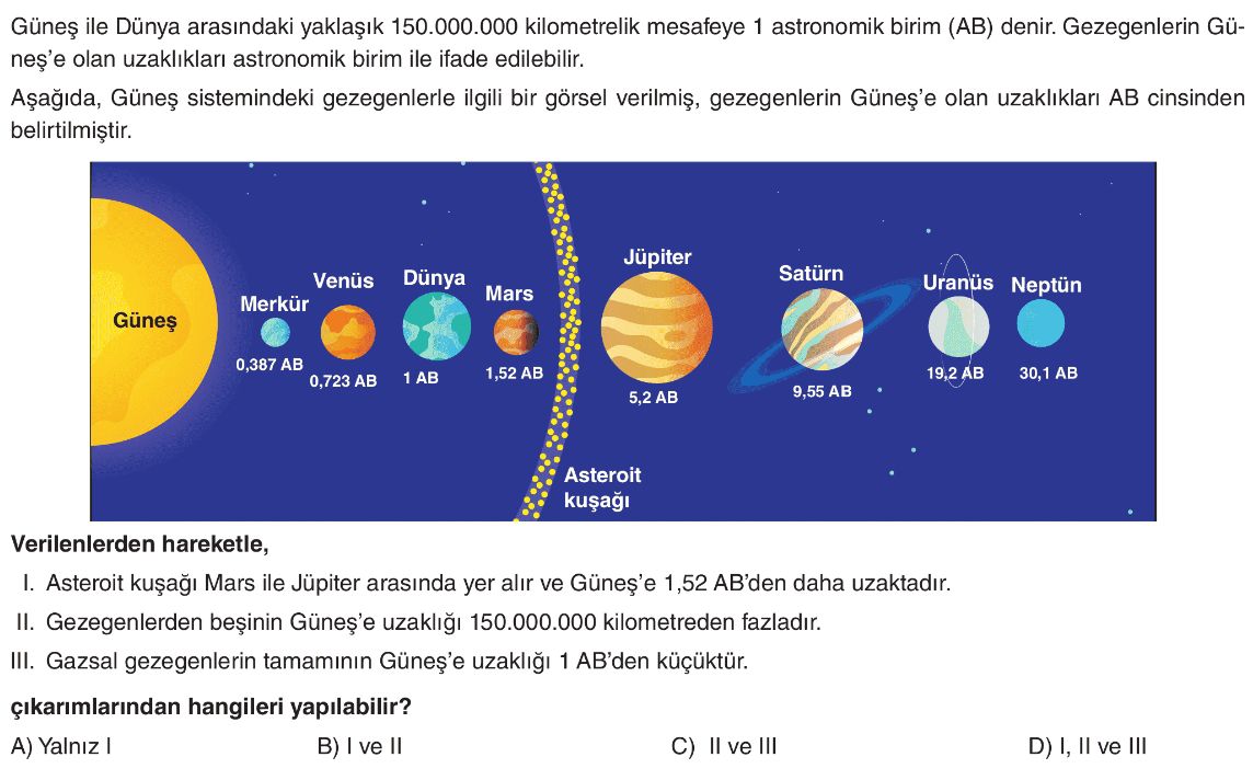 6. Sınıf Güneş Sistemindeki Gezegenler Test 1