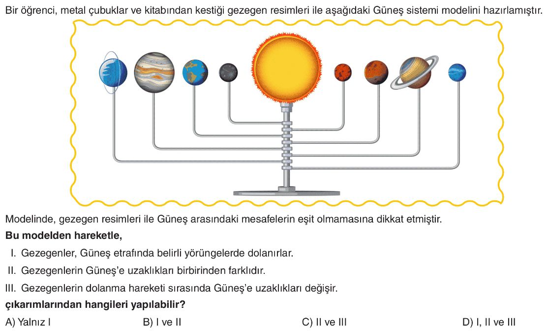 6. Sınıf Güneş Sistemindeki Gezegenler Test 1