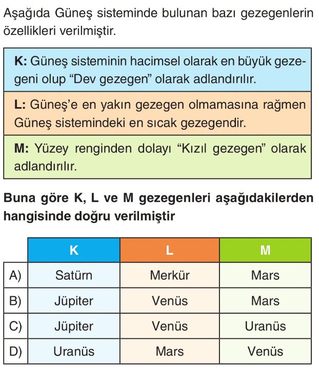 6. Sınıf Güneş Sistemindeki Gezegenler Test 2