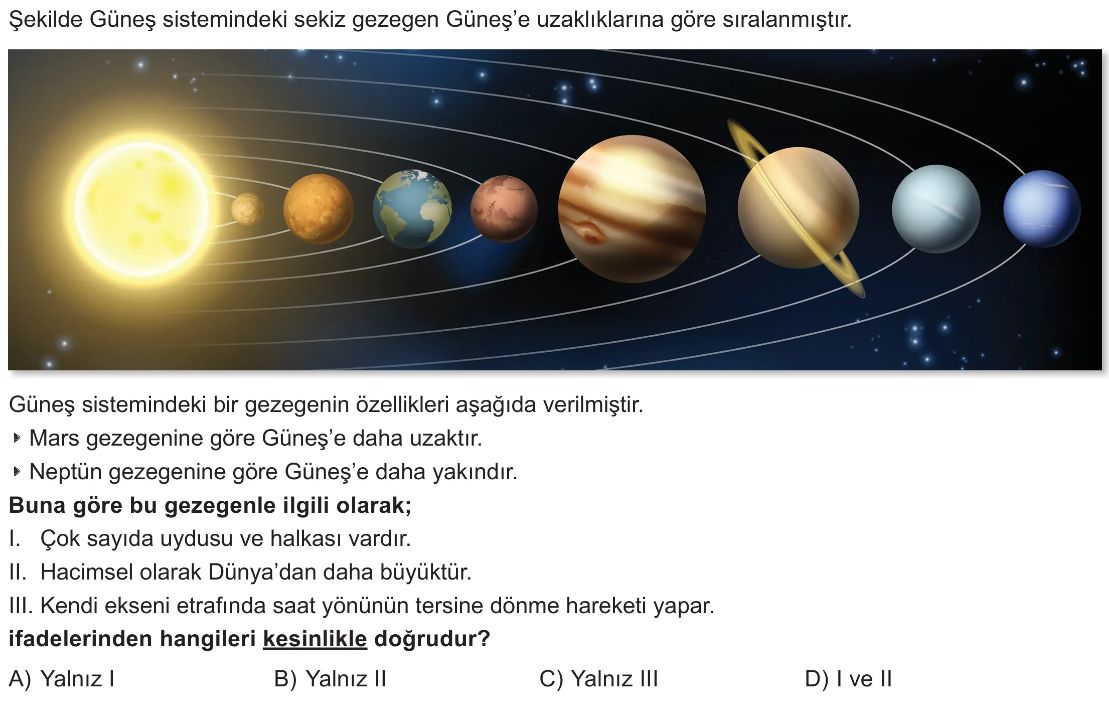 6. Sınıf Güneş Sistemindeki Gezegenler Test 2