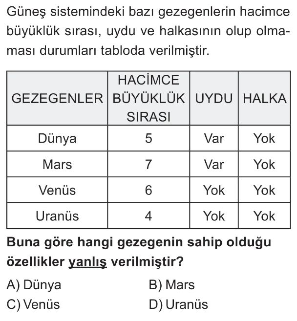 6. Sınıf Güneş Sistemindeki Gezegenler Test 2