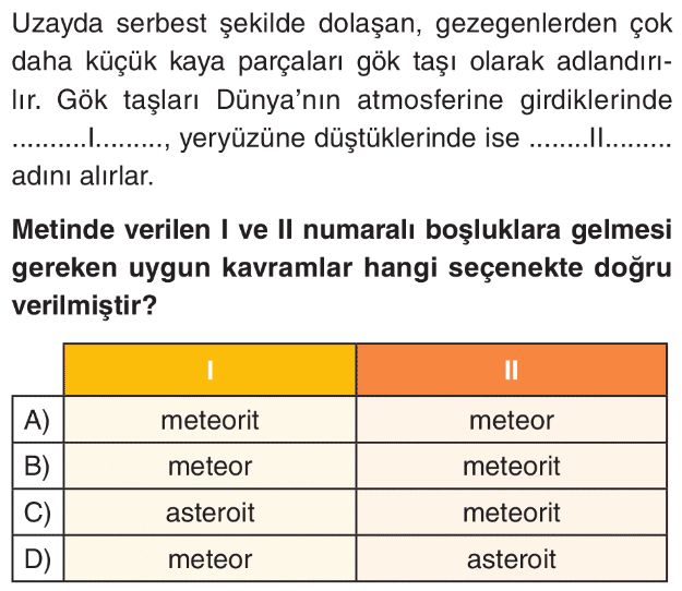 6. Sınıf Güneş Sistemindeki Gezegenler Test 2