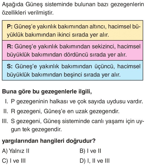 6. Sınıf Güneş Sistemindeki Gezegenler Test 3