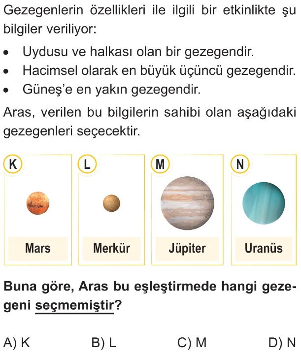 6. Sınıf Güneş Sistemindeki Gezegenler Test 3