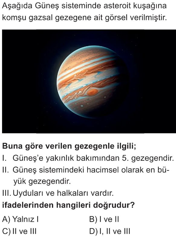 6. Sınıf Güneş Sistemindeki Gezegenler Test 3