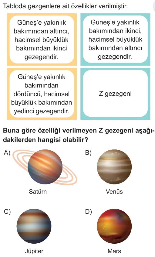 6. Sınıf Güneş Sistemindeki Gezegenler Test 3