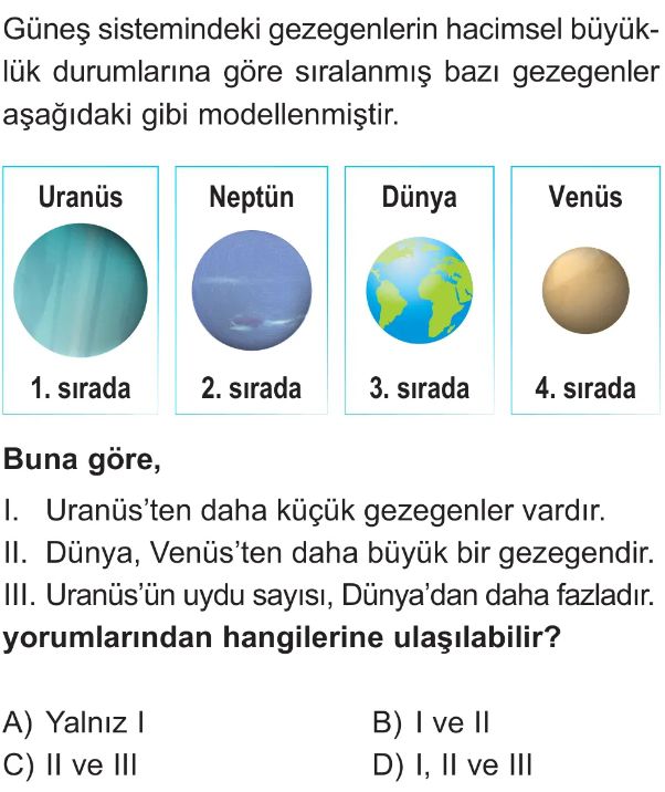 6. Sınıf Güneş Sistemindeki Gezegenler Test 4
