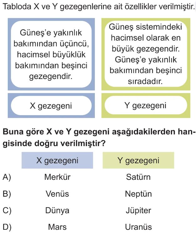 6. Sınıf Güneş Sistemindeki Gezegenler Test 6