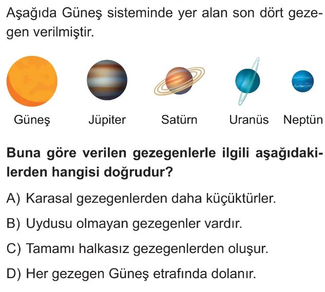 6. Sınıf Güneş Sistemindeki Gezegenler Test 6