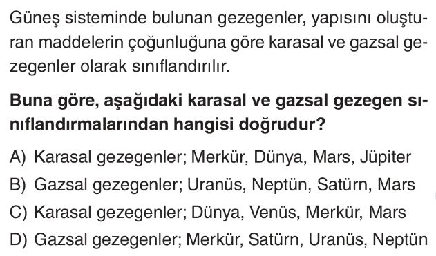 6. Sınıf Güneş Sistemindeki Gezegenler Test 6