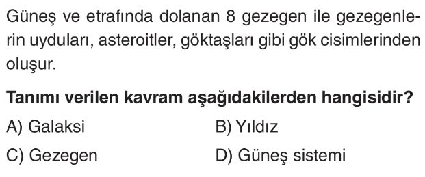 6. Sınıf Güneş Sistemindeki Gezegenler Test 7