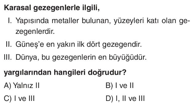 6. Sınıf Güneş Sistemindeki Gezegenler Test 8