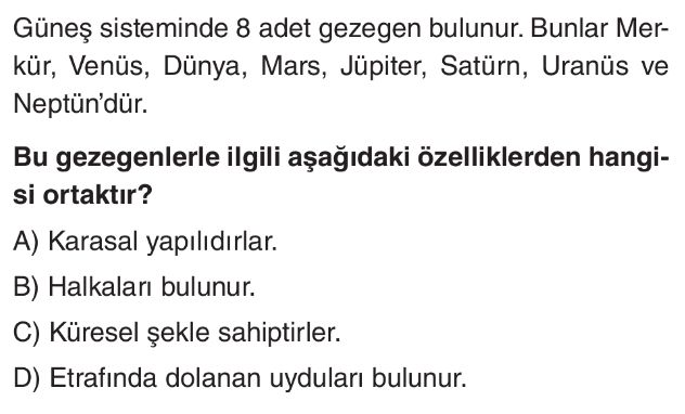 6. Sınıf Güneş Sistemindeki Gezegenler Test 8