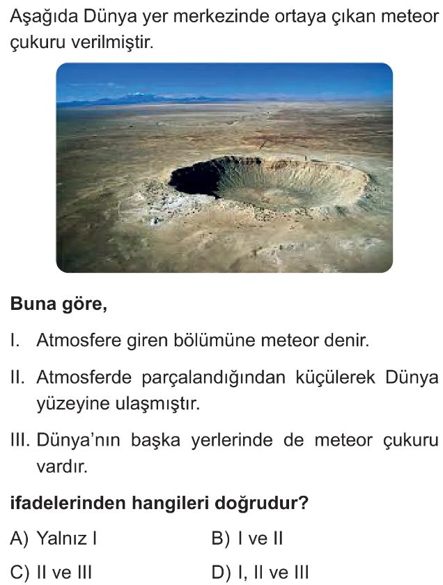 6. Sınıf Güneş Sistemindeki Gezegenler Test 9