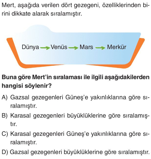 6. Sınıf Güneş Sistemindeki Gezegenler Test 9