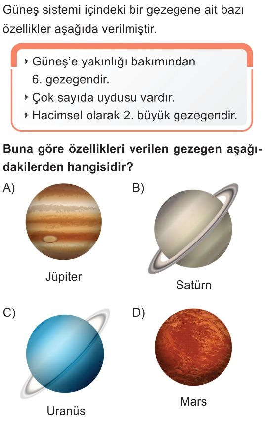 6. Sınıf Güneş Sistemindeki Gezegenler Test 9