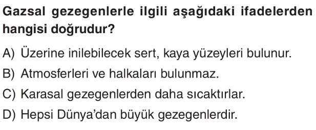 6. Sınıf Güneş Sistemindeki Gezegenler Test 9