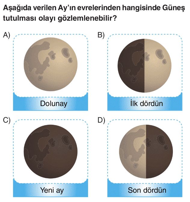 6. Sınıf Güneş ve Ay Tutulmaları Test 1