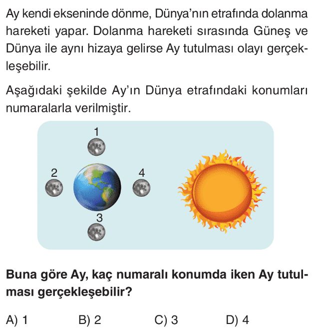 6. Sınıf Güneş ve Ay Tutulmaları Test 1