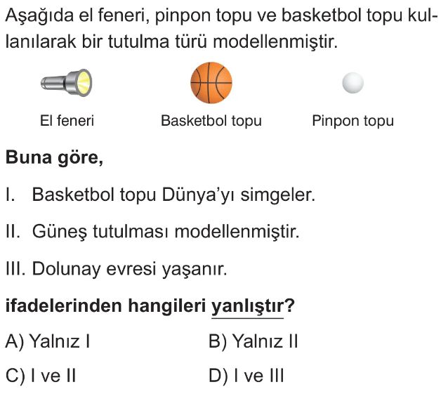 6. Sınıf Güneş ve Ay Tutulmaları Test 1