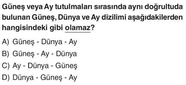 6. Sınıf Güneş ve Ay Tutulmaları Test 1
