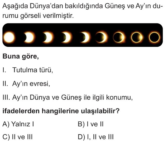 6. Sınıf Güneş ve Ay Tutulmaları Test 3
