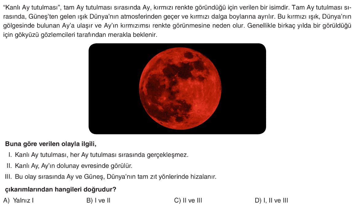 6. Sınıf Güneş ve Ay Tutulmaları Test 3