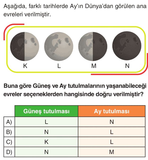 6. Sınıf Güneş ve Ay Tutulmaları Test 3