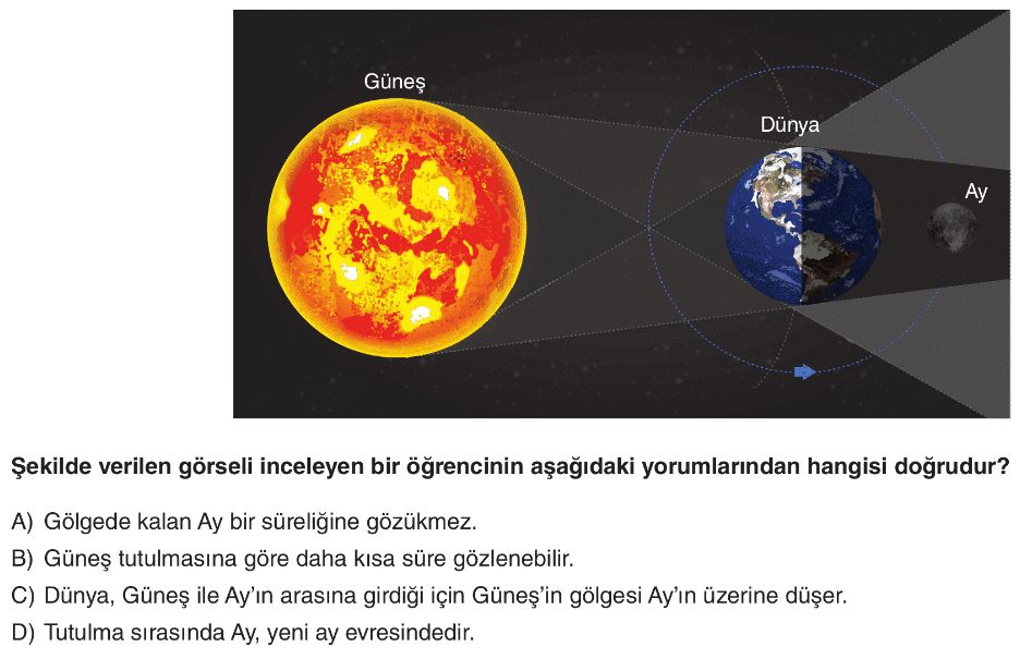 6. Sınıf Güneş ve Ay Tutulmaları Test 6