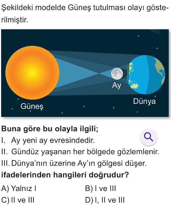 6. Sınıf Güneş ve Ay Tutulmaları Test 6