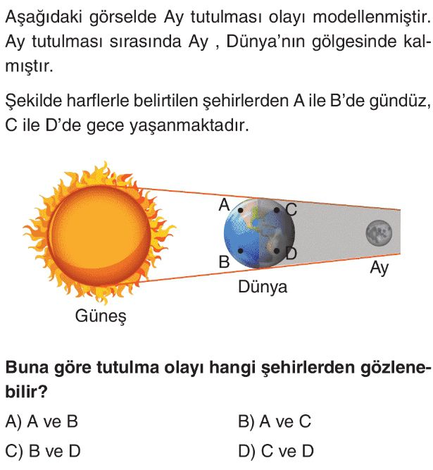 6. Sınıf Güneş ve Ay Tutulmaları Test 7