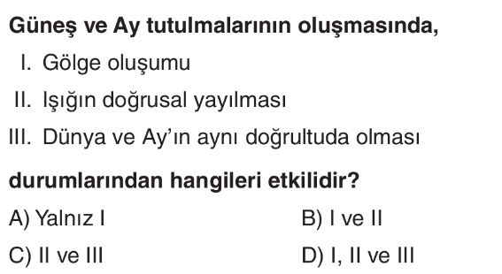 6. Sınıf Güneş ve Ay Tutulmaları Test 7