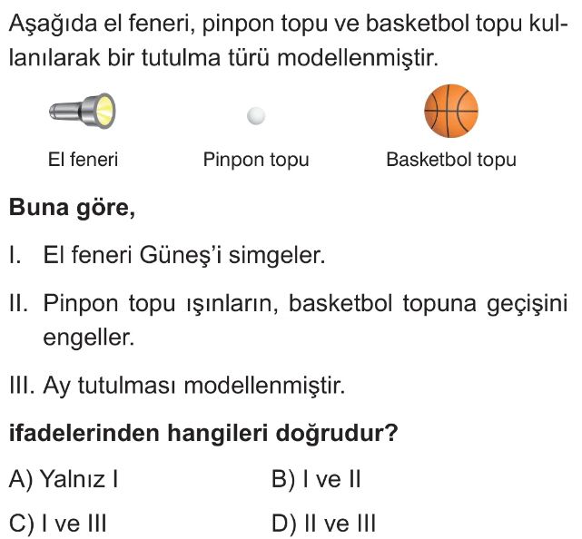 6. Sınıf Güneş ve Ay Tutulmaları Test 7