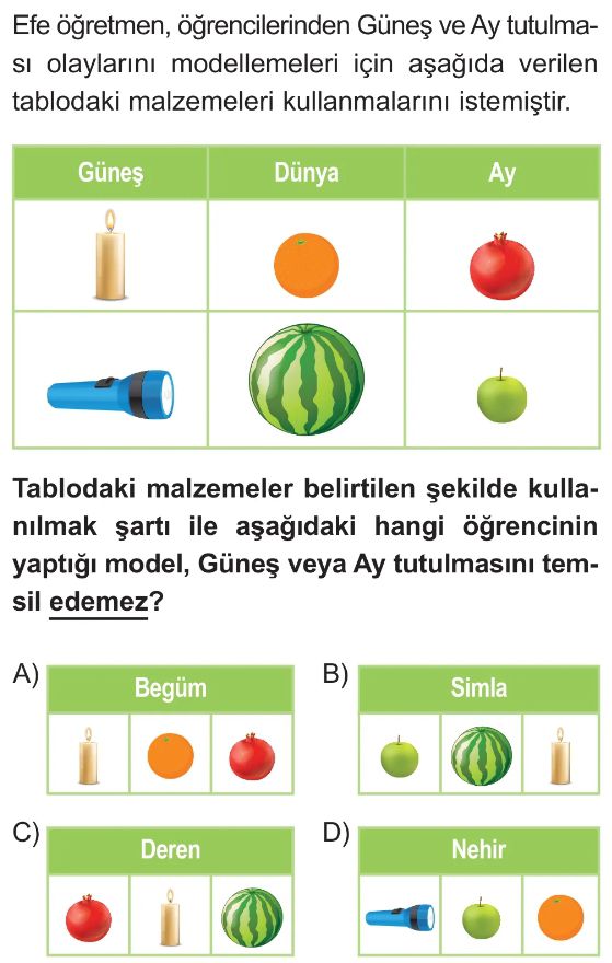 6. Sınıf Güneş ve Ay Tutulmaları Test 7