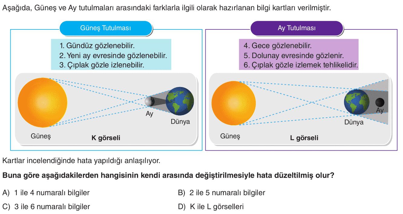 6. Sınıf Güneş ve Ay Tutulmaları Test 7