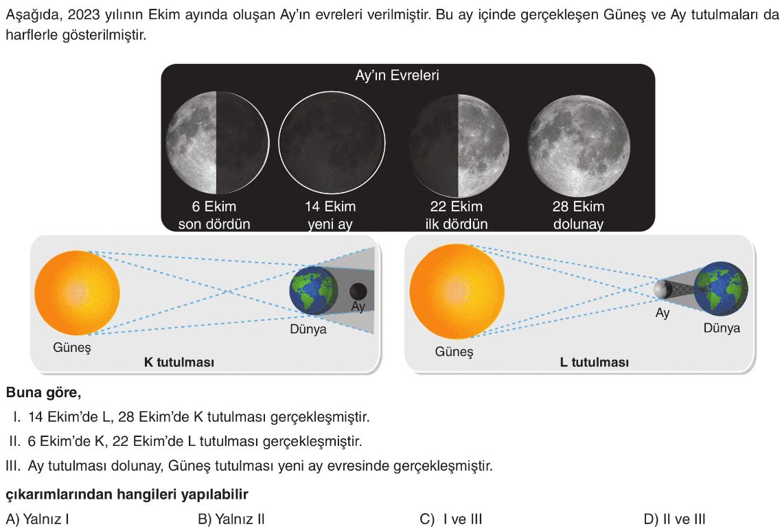 6. Sınıf Güneş ve Ay Tutulmaları Test 8
