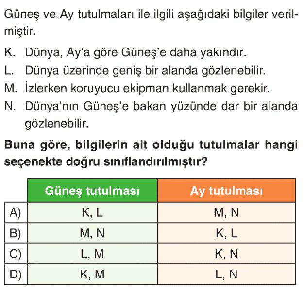 6. Sınıf Güneş ve Ay Tutulmaları Test 8