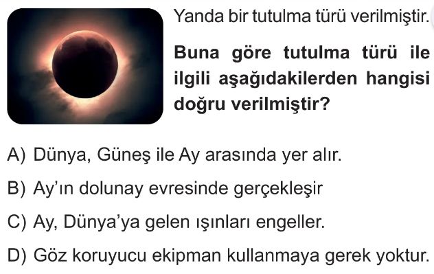 6. Sınıf Güneş ve Ay Tutulmaları Test 8