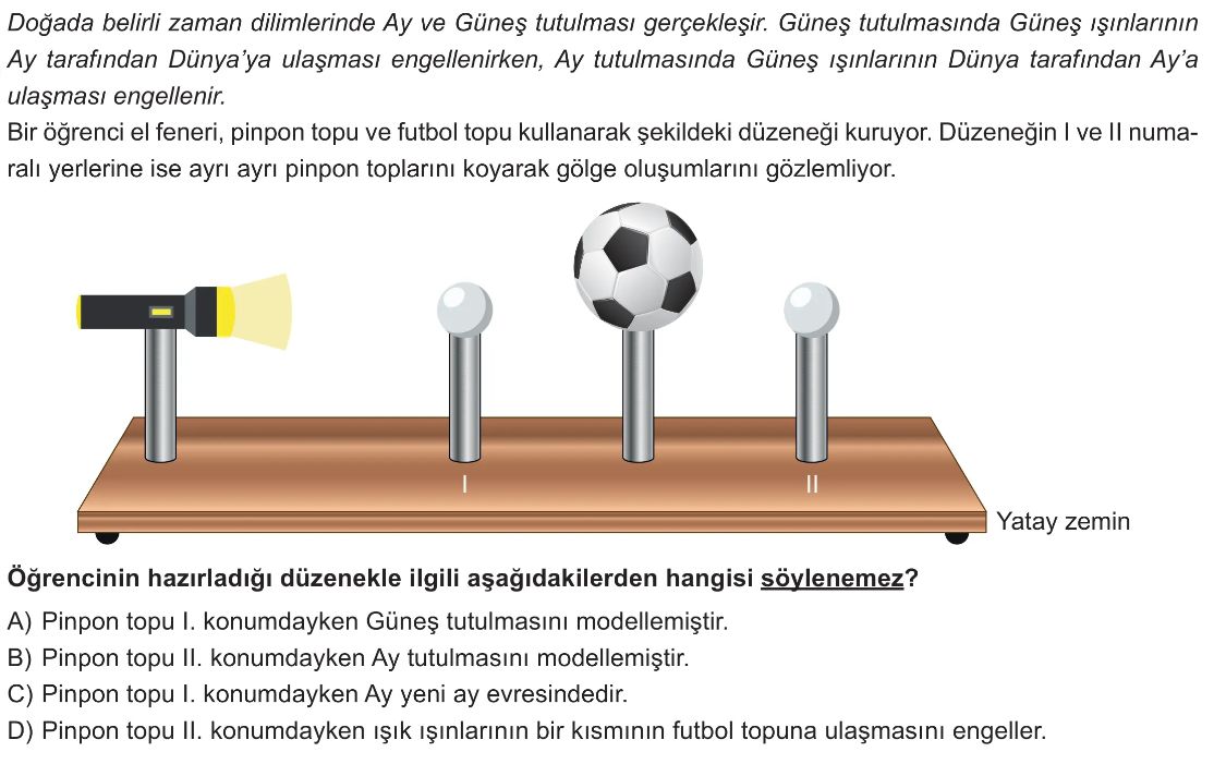 6. Sınıf Güneş ve Ay Tutulmaları Test 8