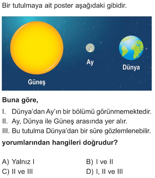 6. Sınıf Güneş Sistemi ve Tutulmalar Ünite Değerlendirme Test 1