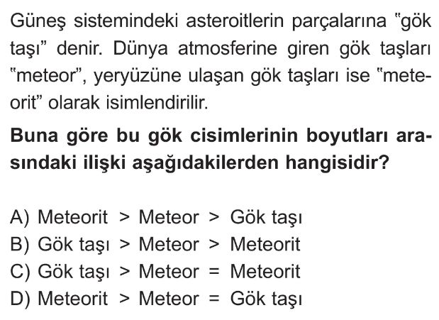 6. Sınıf Güneş Sistemi ve Tutulmalar Ünite Değerlendirme Test 1