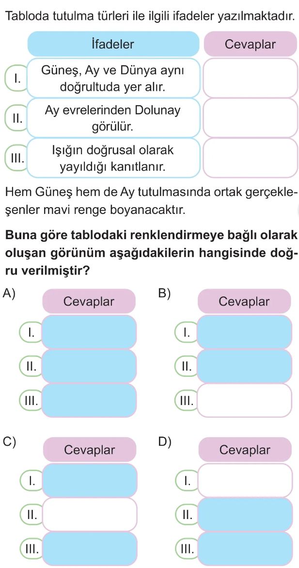 6. Sınıf Güneş Sistemi ve Tutulmalar Ünite Değerlendirme Test 1