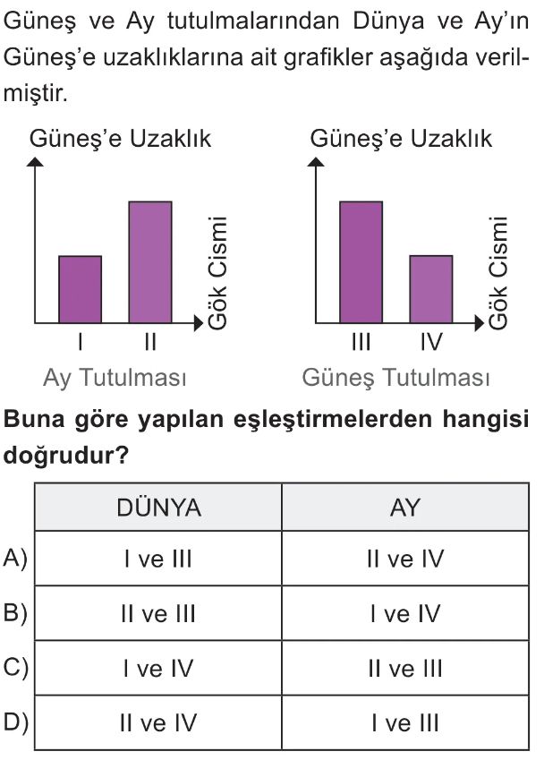 6. Sınıf Güneş Sistemi ve Tutulmalar Ünite Değerlendirme Test 2